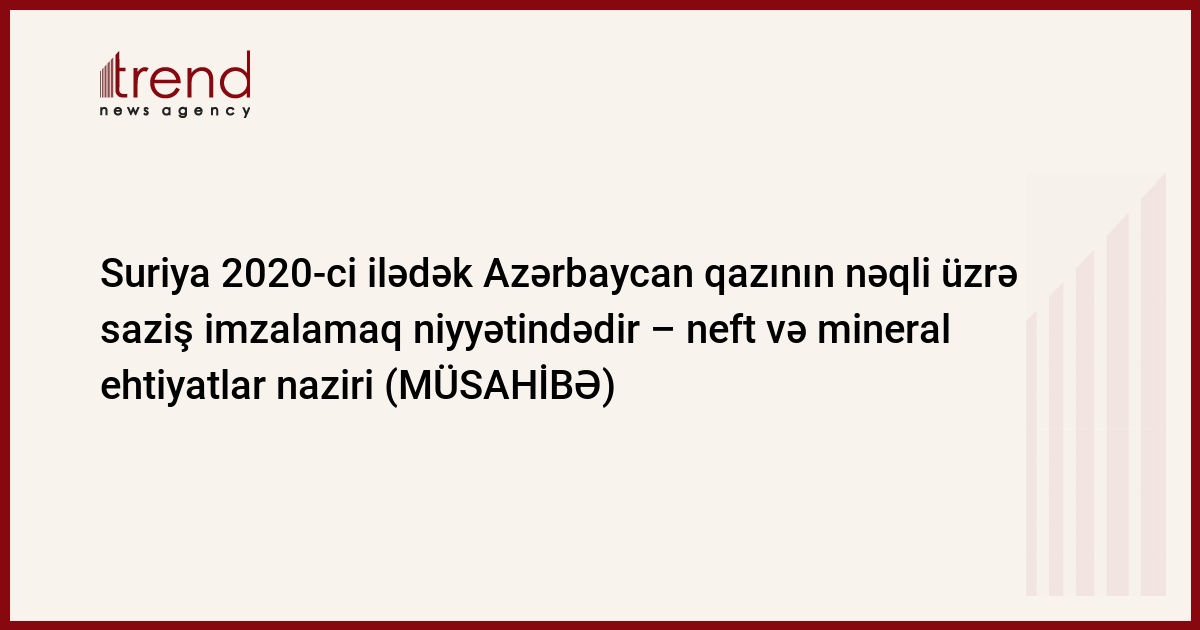 Trend-in Suriyanın neft və mineral ehtiyatlar naziri, Azərbaycan - Suriya Əməkdaşlığı üzrə hökumətlərarası komissiyanın həmsədri Süfyan əl-Əlao ilə müsahibəsi