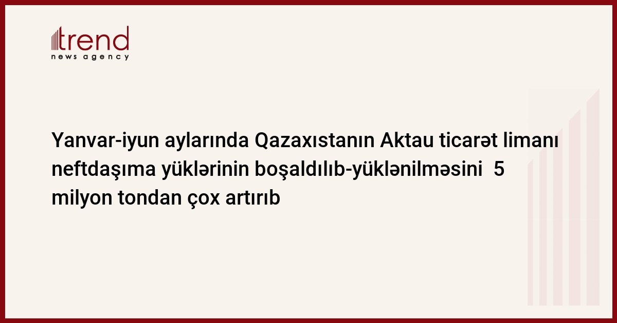 Yanvar-iyun aylarında Aktau Beynəlxalq Dəniz Ticarət Limanı (ABDTL) 2009-cu ilin 5,5 milyon tondan çox göstəricisinə nisbətdə 5,1 milyon ton neftdaşıma yükləri daşıyıb. Bu barədə limandan verilən məlumatda deyilir. Neftdaşıma yüklərinin həcmi iyunda 811,5 min ton təşkil edib, ötən ilin analoji dövründə bu göstərici 1,1 milyon ton olub.