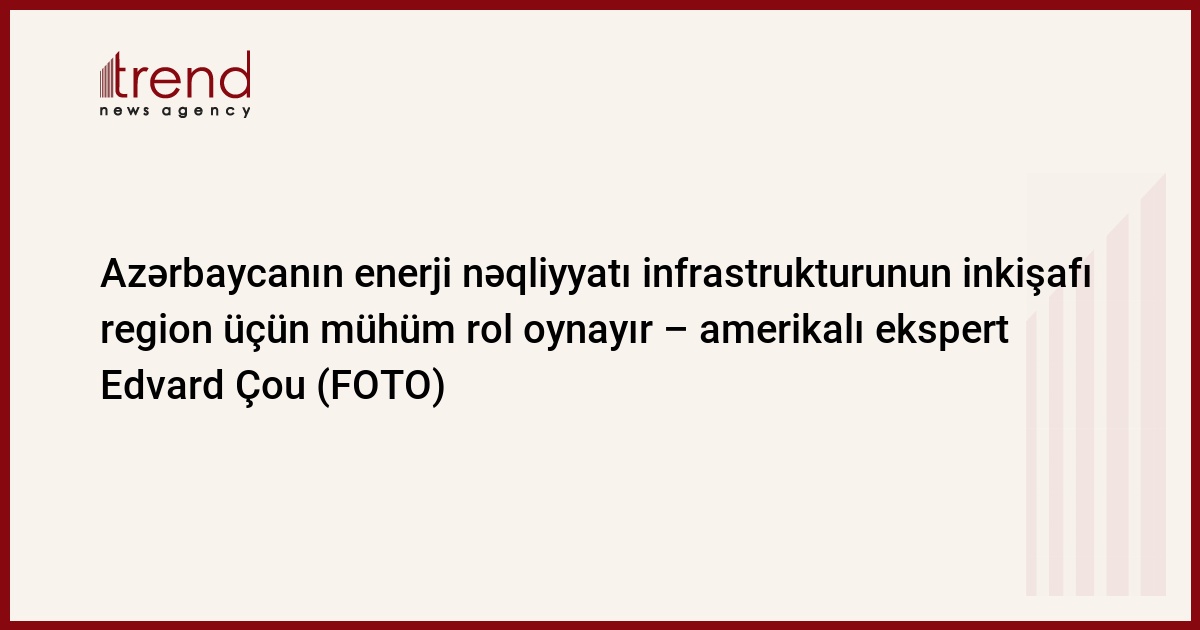 "Bakı-Tbilsii-Ceyhan, Bakı-Supsa və Cənubi Qafqaz qaz kəməri də daxil olmaqla, [Azərbaycan] infrastrukturun inkişafı Azərbaycan və ümumilikdə, region üçün mühüm rol oynayır". Bu barədə cümə axşamı Trend BİA-dakı brifinqdə Amerikanın Strateji və Beynəlxalq Araşdırmalar Mərkəzinin energetika məsələləri üzrə baş eksperti Edvard Çou (Edward Chow) məlumat verib.