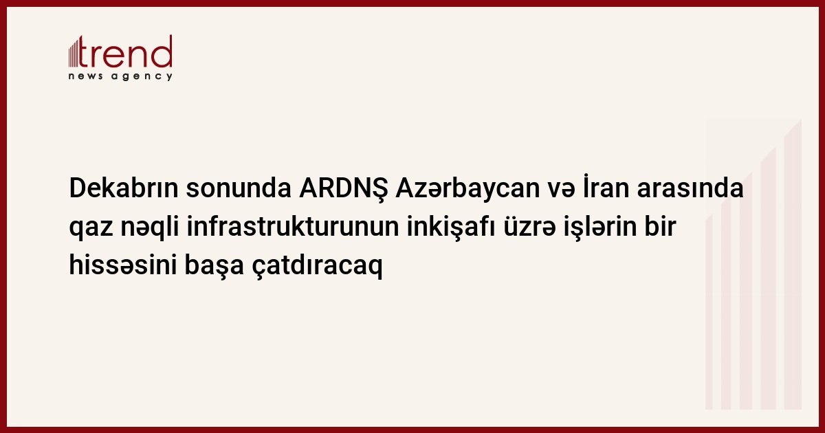 Dekabrın ortalarınadək ARDNŞ Azərbaycan və İranın qaz sistemlərini birləşdirən qaz nəqli infrastrukturunun bir hissəsi olan Astarada yeni qaz-kompressor stansiyasının tikintisi üzrə işlərin bir hissəsini başa çatdıracaq. Bu barədə cümə günü neft-qaz bazarındakı mənbə deyib.