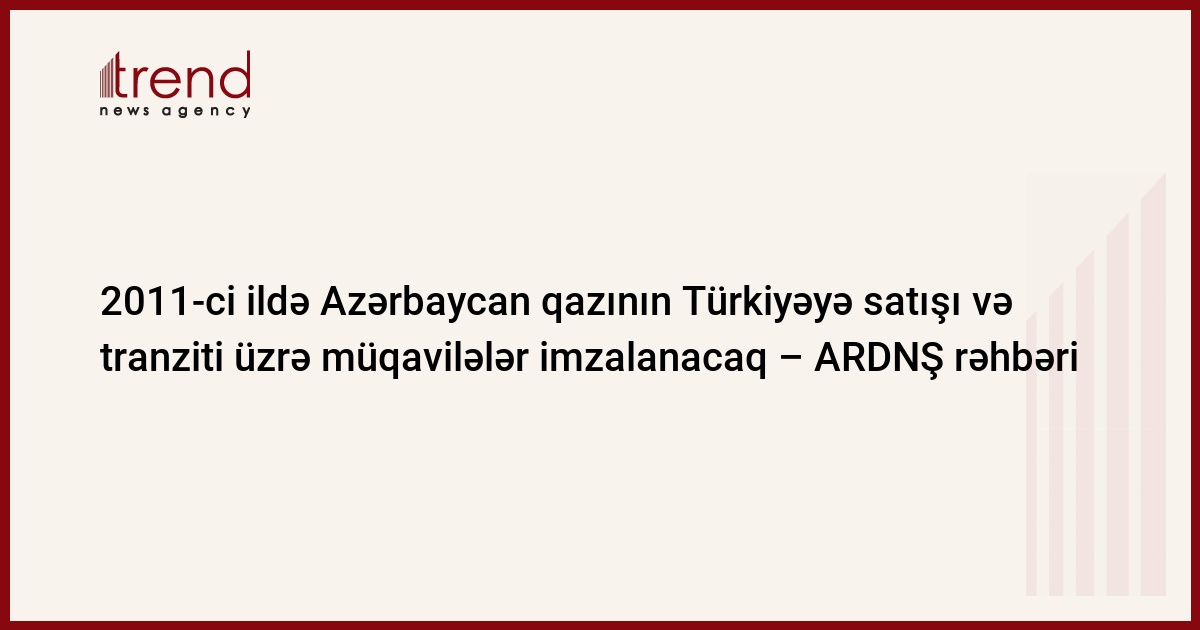 2011-ci ilin birinci yarısında Azərbaycan qazının Türkiyəyə satışı və tranziti üzrə müqavilələr imzalanacaq. Bu barədə bazar ertəsi ARDNŞ (Azərbaycan Respublikası Dövlət Neft Şirkəti) prezidenti Rövnəq Abdullayev məlumat verib.
