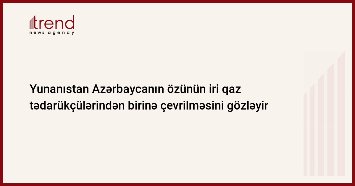 Yunanıstan Azərbaycanın özünün iri qaz tədarükçülərindən birinə çevrilməsini gözləyir. Trend-in məlumatına görə, bu barədə çərşənbə günü İqtisadi əməkdaşlıq üzrə Azərbaycan-Yunanıstan hökumətlərarası komissiyasının Bakıda keçirilən üçüncü iclasının gedişində Yunanıstanın xarici işlər nazirinin müavini Spiros Kuvelis bildirib.
