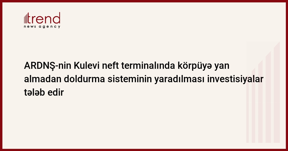 ARDNŞ-yə (Azərbaycan Respublikası Dövlət Neft Şirkəti) məxsus Kulevi neft terminalının yaxınlığında dənizdə böyük tutumlu tankerlərin doldurulması üçün körpüyə yan almadan doldurma sisteminin yaradılması yükgöndərənlər tərəfindən dəqiq zəmanətin olduğu halda mümkündür. Bu barədə çərşənbə axşamı Trend-ə ARDNŞ-dəki mənbə məlumat verib.