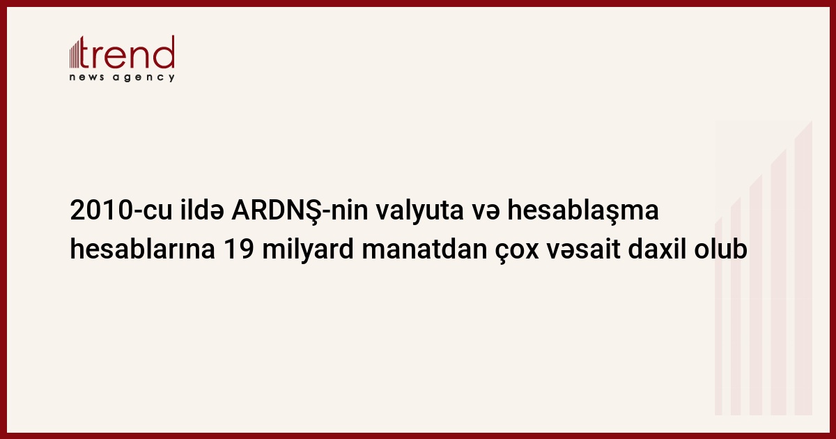 2010-cu ildə ARDNŞ-nin valyuta və hesablaşma hesablarına 19,1 milyard manata yaxın vəsait daxil olub. Bu barədə Azərbaycan hökumətinin ötən ilin yekunları üzrə hesabatında deyilir.