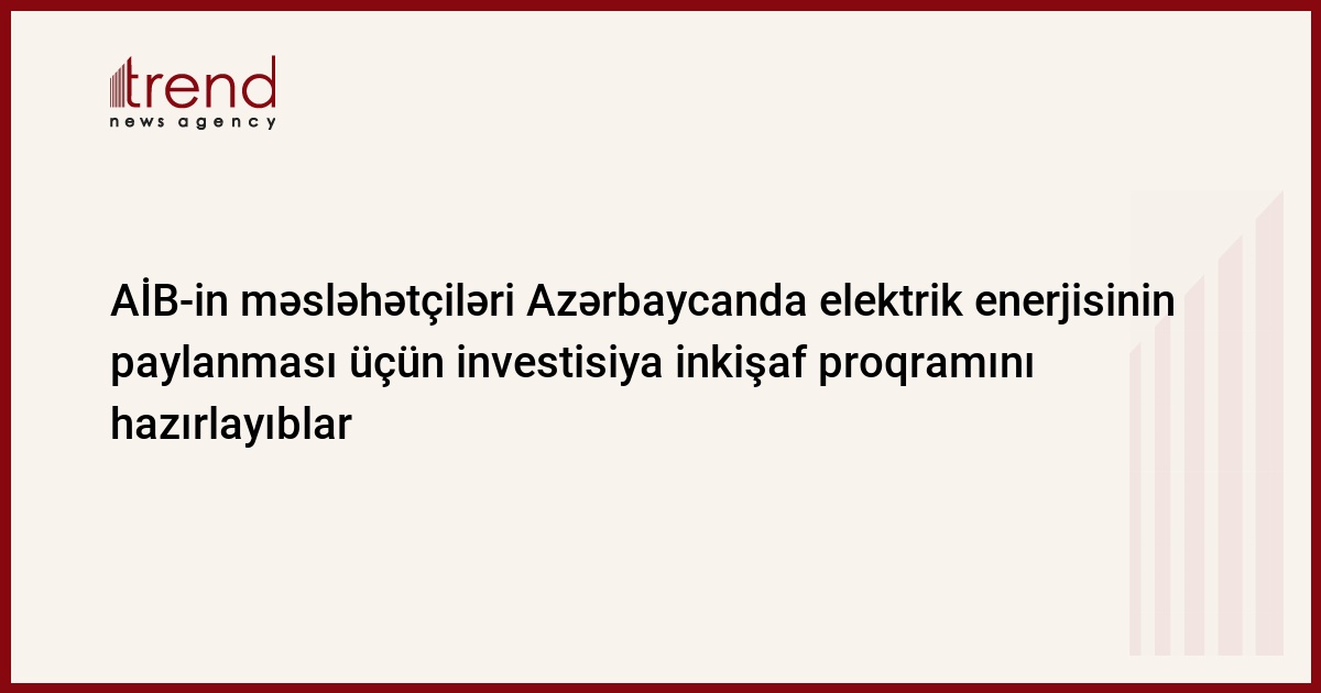 Azərbaycanın elektrik enerjisi üçün "Azərenerji" ASC-nin "Power Distribution Development Investment Program" investisiya proqramının maliyyələşdirilməsi bankın çoxtranşlı maliyyələşdirmə proqramı (MFF) çərçivəsində həyata keçiriləcək. MFF-in dəyəri 500 milyon dollar qiymətləndirilir. İlk kredit 150 milyon dollar səviyyəsində gözlənilir. O, AİB-in adi kredit resurslarından ayrılacaq.