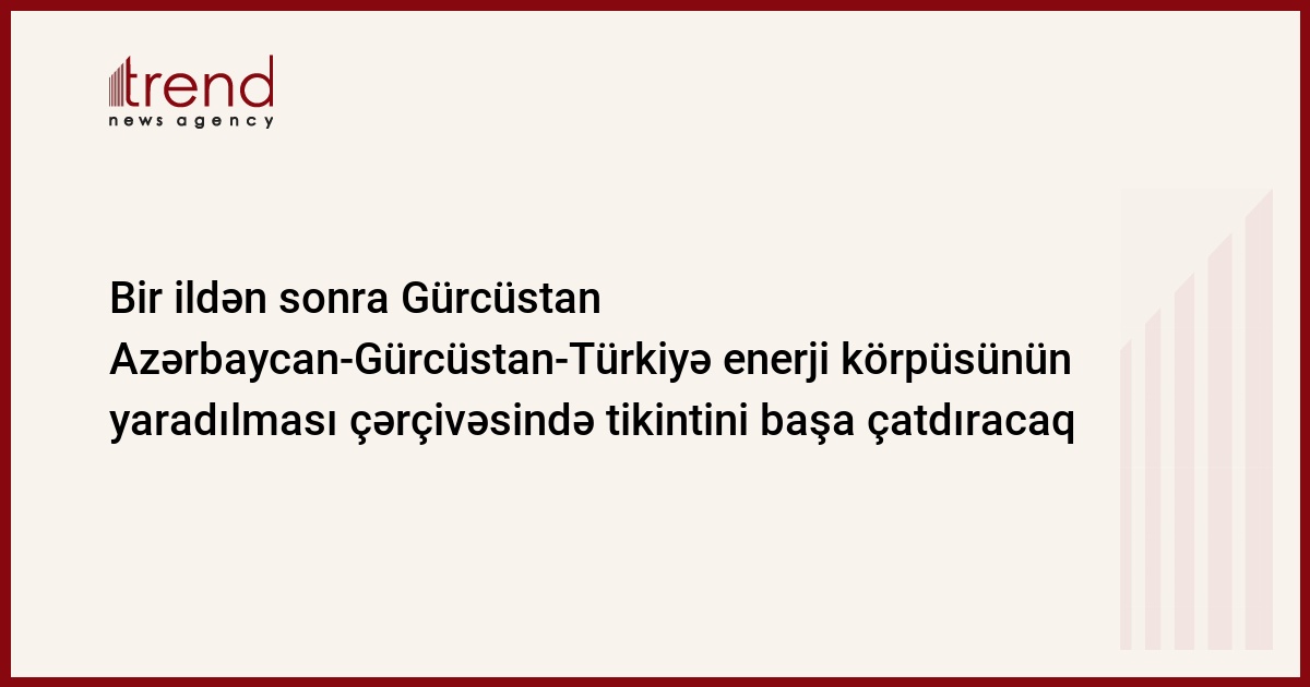 Gürcüstan 2012-ci il mayın sonunadək Azərbaycan-Gürcüstan-Türkiyə enerji körpüsünün yaradılması çərçivəsində tikinti işlərini başa çatdırmağı planlaşdırır. Bu barədə çərşənbə axşamı Gürcüstanın energetika naziri Aleksandr Xetaquri bildirib.