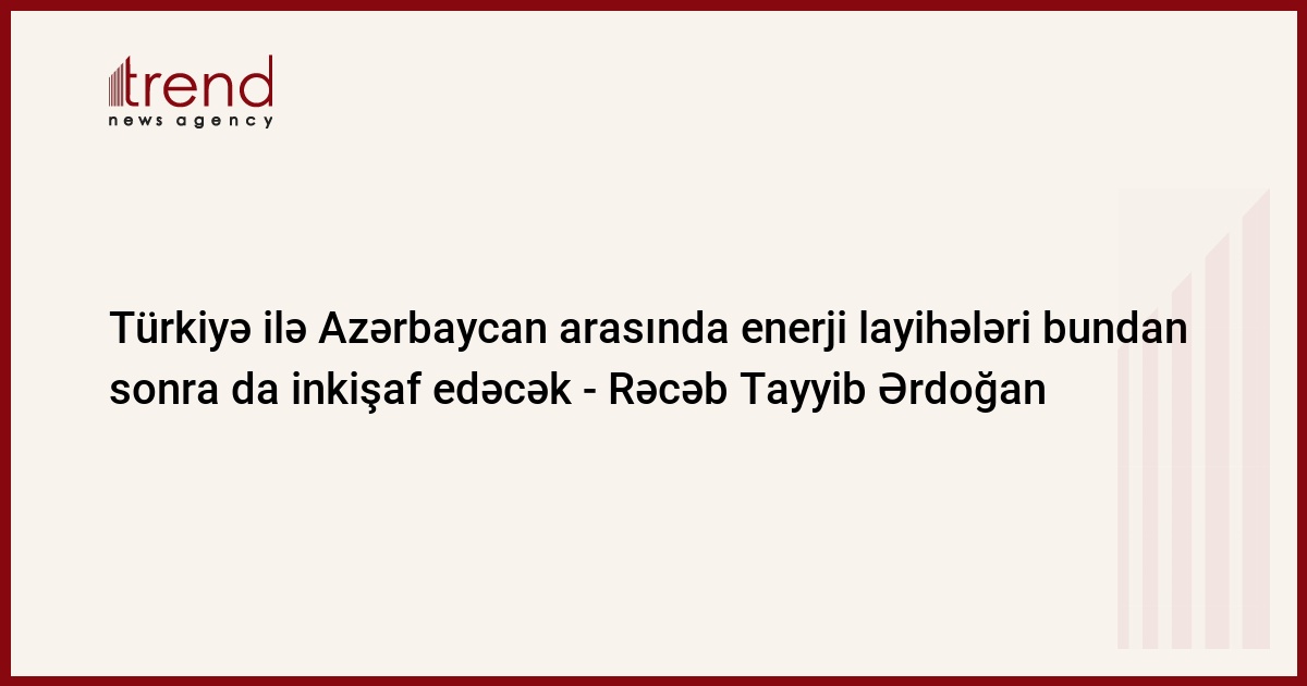 "Türkiyə ilə Azərbaycan arasında enerji layihələri bundan sonra da inkişaf edəcək", - Ərdoğan bildirib.