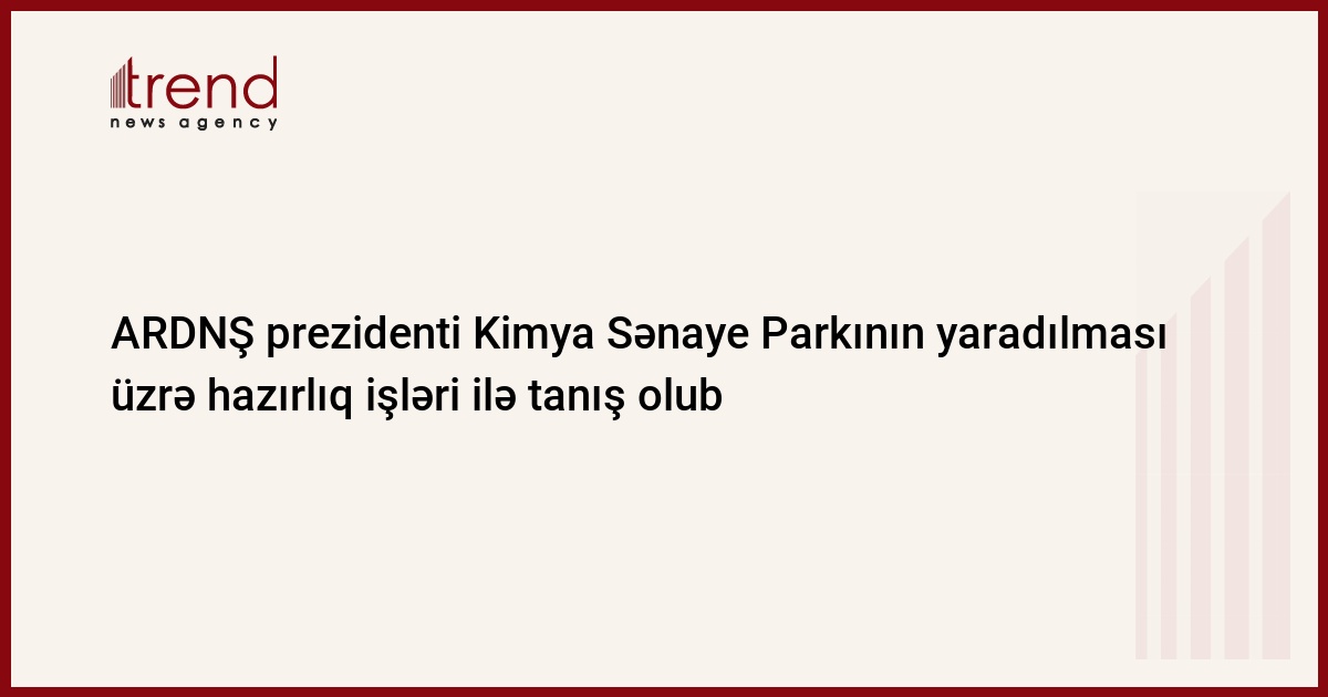 ARDNŞ prezidenti Rövnəq Abdullayev "Azərikimya" İB-nin Etilen-polietilen zavodunda olub. Şirkət rəhbəri müəssisənin EP-300 istehsalatının əsaslı şəkildə təmir olunaraq yenidən qurulmuş inzibati binasının açılışında iştirak edib. Bu barədə çərşənbə günü Trend-ə İB-dən məlumat verilib.