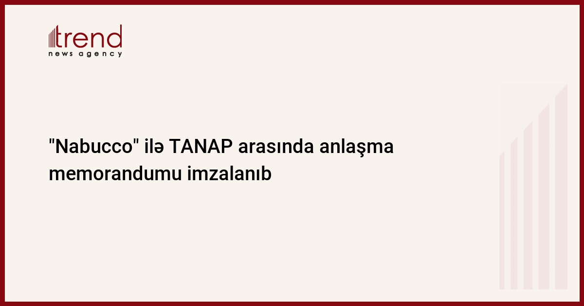 Bu gün "Nabucco Gas Pipeline International GmbH" Transanadolu boru kəməri (TANAP) ilə (TANAP Doalgaz Iletim A.S.) anlaşma və əməkdaşlıq memorandumu imzalayıb. Trend-in məlumatına görə, bu memorandumla hər iki tərəf "Cənub qaz dəhlizi"nin inkişafı üçün əməkdaşlığa razı olduqlarını rəsmi surətdə bəyan edirlər.