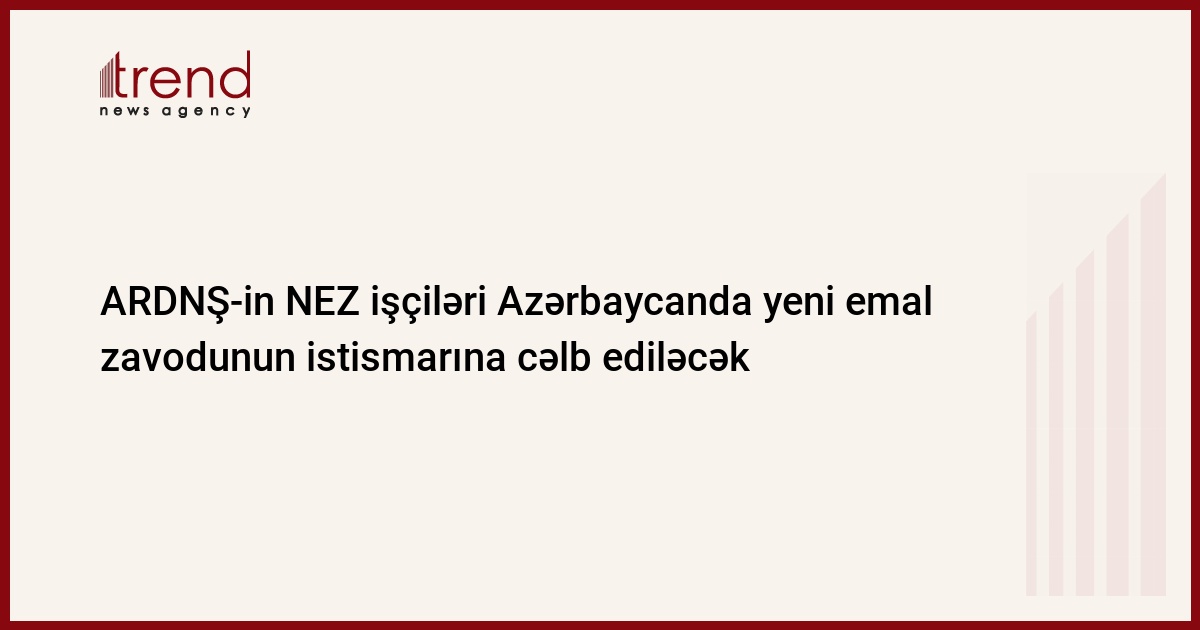 Heydər Əliyev adına Bakı Neft Emalı Zavodunun (NEZ) işçiləri ARDNŞ-in (Azərbaycan Respublikası Dövlət Neft Şirkəti) Azərbaycanda tikmək niyyətində olduğu neft və qaz və neft-kimya məhsulları üzrə yeni kompleksin istismar prosesində aktiv şəkildə iştirak edəcəklər. Bu barədə ARDNŞ rəhbəri Rövnəq Abdullayev NEZ-in 60 illiyinə həsr edilən tədbirin gedişi zamanı bildirib.