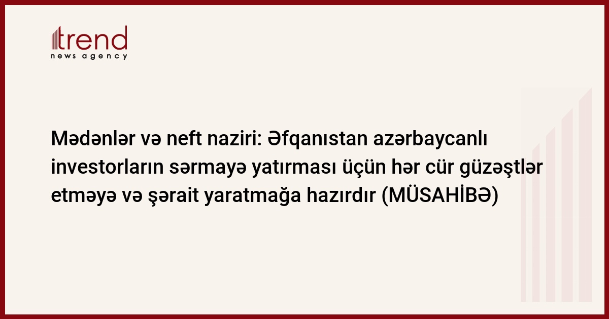 Trend-in Əfqanıstanın mədənlər və neft naziri Vahidullah Şəhrani ilə müsahibəsi