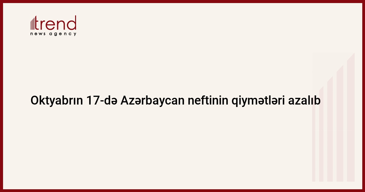 CIF bazisi üzrə İtaliyanın Augusta limanı şərtləri ilə Azərbaycanın yüngül neftinin qiyməti oktyabrın 17-də 111,6 dollar/barel təşkil edib. 1997-ci ildən yüngül neft hasil edən Azərbaycan Respublikası Dövlət Neft Şirkətindən (ARDNŞ) cümə günü Trend-ə verilən məlumata görə, cümə axşamı neftin qiymətləri çərşənbə gününə nisbətən 1,41 dollar/barel azalıb.