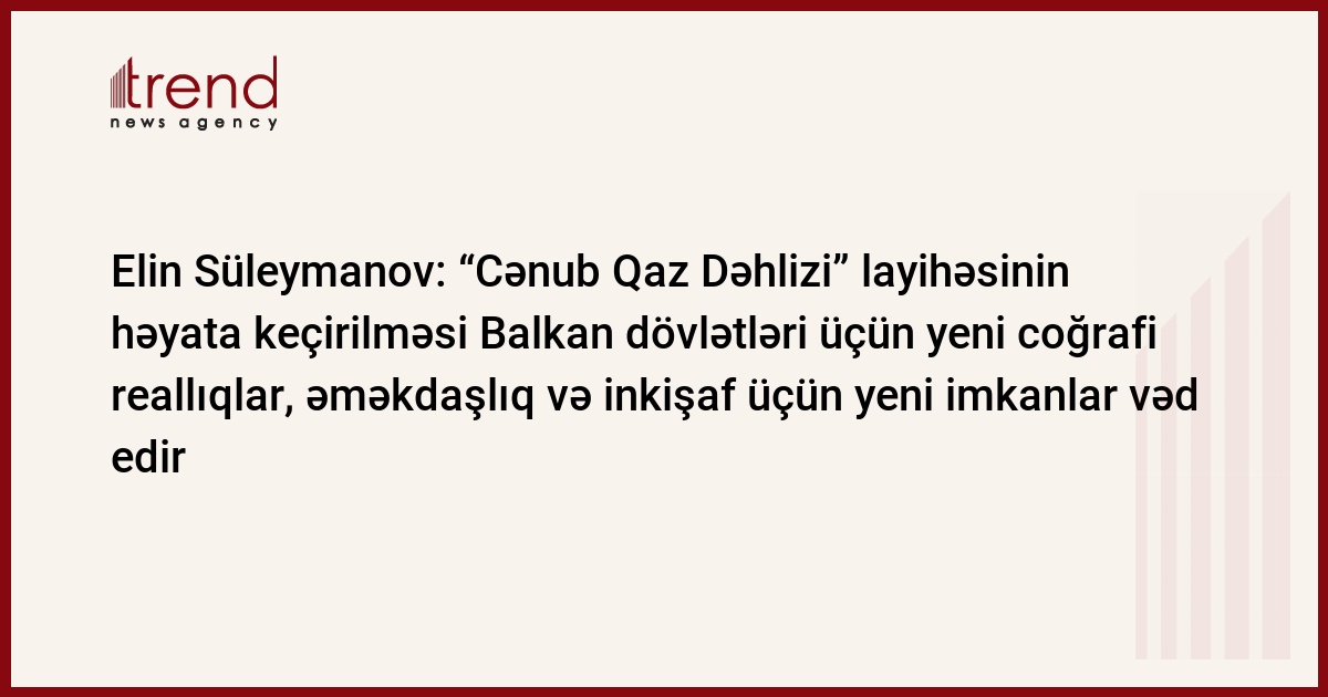 Diplomat bu xüsusda "Cənub Qaz Dəhlizi" layihəsinin həyata keçirilməsi Balkan dövlətləri üçün yeni coğrafi reallıqlar, əməkdaşlıq və inkişaf üçün yeni imkanlar vəd etdiyini bildirib.