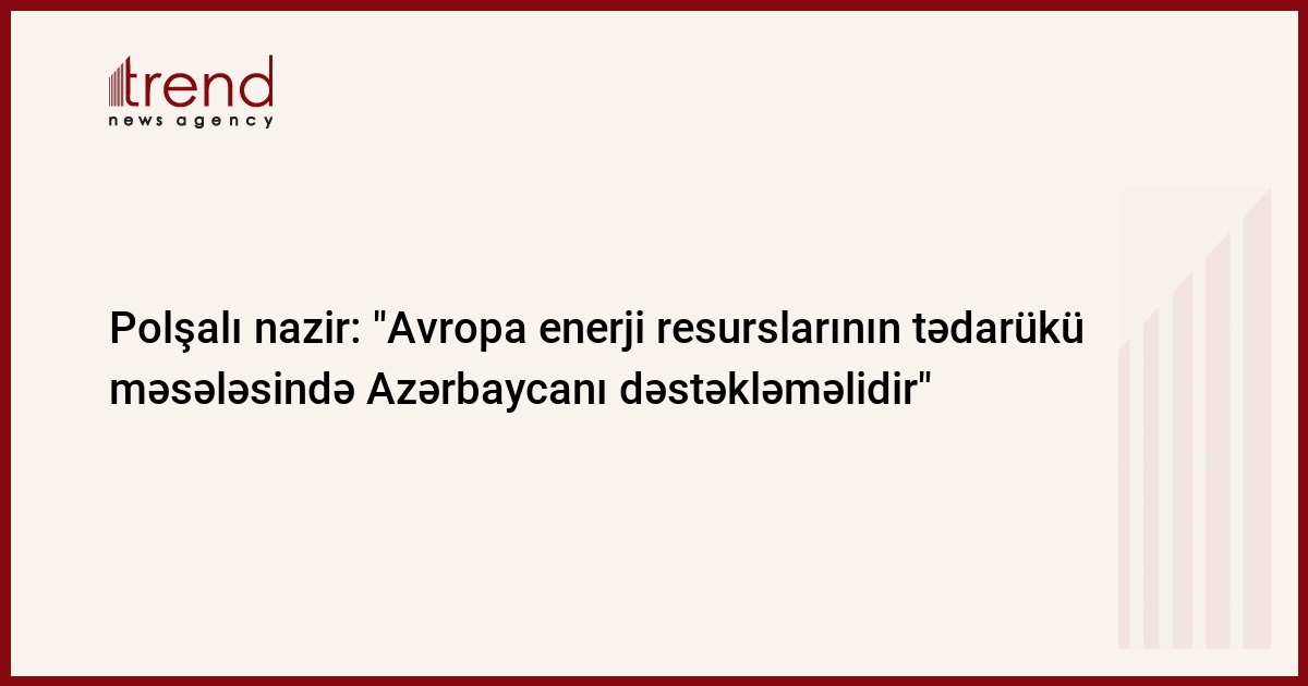 Azərbaycan Avropa, xüsusilə Polşa da daxil olmaqla Cənub-Şərqi Avropa üçün əhəmiyyətli enerji tərəfdaşıdır. Trend-in məlumatına əsasən, bunu Bakıda keçirilən 22-ci Beynəlxalq Caspian Oil & Gas-2015 konfransında Polşanın Baş nazirinin müavini, İqtisadiyyat naziri Yanuş Pexoçinski deyib.