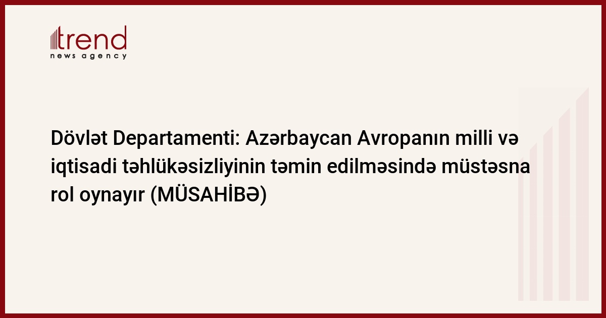 ABŞ Dövlət Departamentinin beynəlxalq enerji məsələləri üzrə xüsusi nümayəndəsi və əlaqələndiricisi Amos Hokstaynın Trend-ə müsahibəsi
