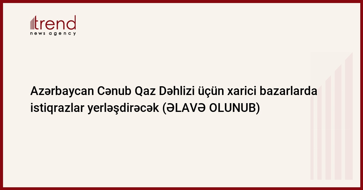 Maliyyə Nazirliyi fevralın ilk ongünlüyündə Cənub Qaz Dəhlizi üçün beynəlxalq bazarlarda "road-show" istiqrazlar yerləşdirməyə hazırlaşır.
