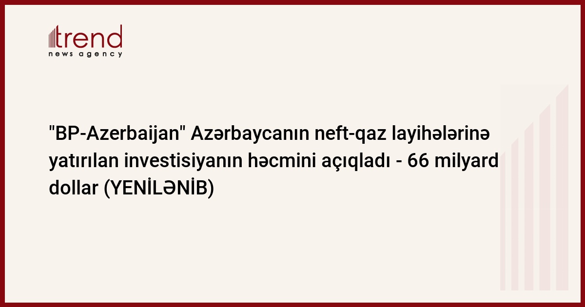 BP və tərəfdaşlarının Azərbaycanın neft-qaz layihələrinə ümumi investisiyası 66 milyard dollar təşkil edir.