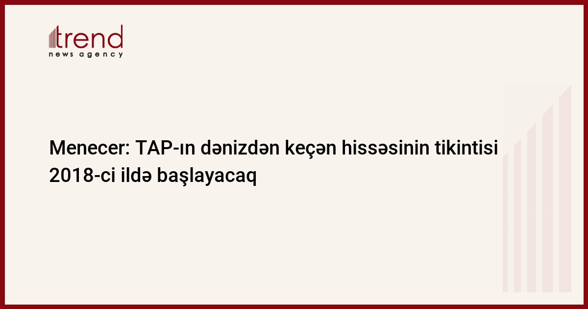 Transadriatik boru kəmərinin (TAP) dənizdən keçən hissəsinin tikintisinin 2018-ci ildən başlaması planlaşdırılır.