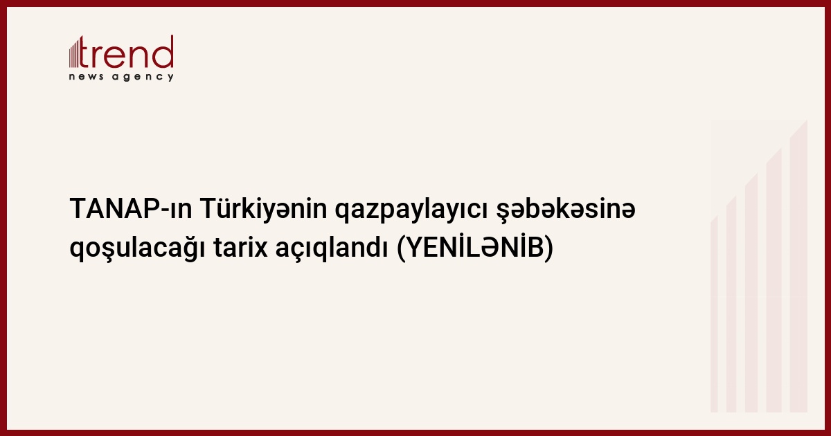Qeyd edək ki, Azərbaycanın "Şahdəniz" yatağından Avropaya qaz nəqlini nəzərdə tutan "Cənub Qaz Dəhlizi"nin tərkib hissəsi olan Transanadolu boru kəmərinin ilkin buraxılış gücü ildə 16 milyard kubmetr təşkil edəcək. Transadriatik qaz kəmərinin (TAP) tikintisi başa çatandan sonra ilk qaz Avropaya təxminən 2020-ci ilin əvvəllərində çatacaq.