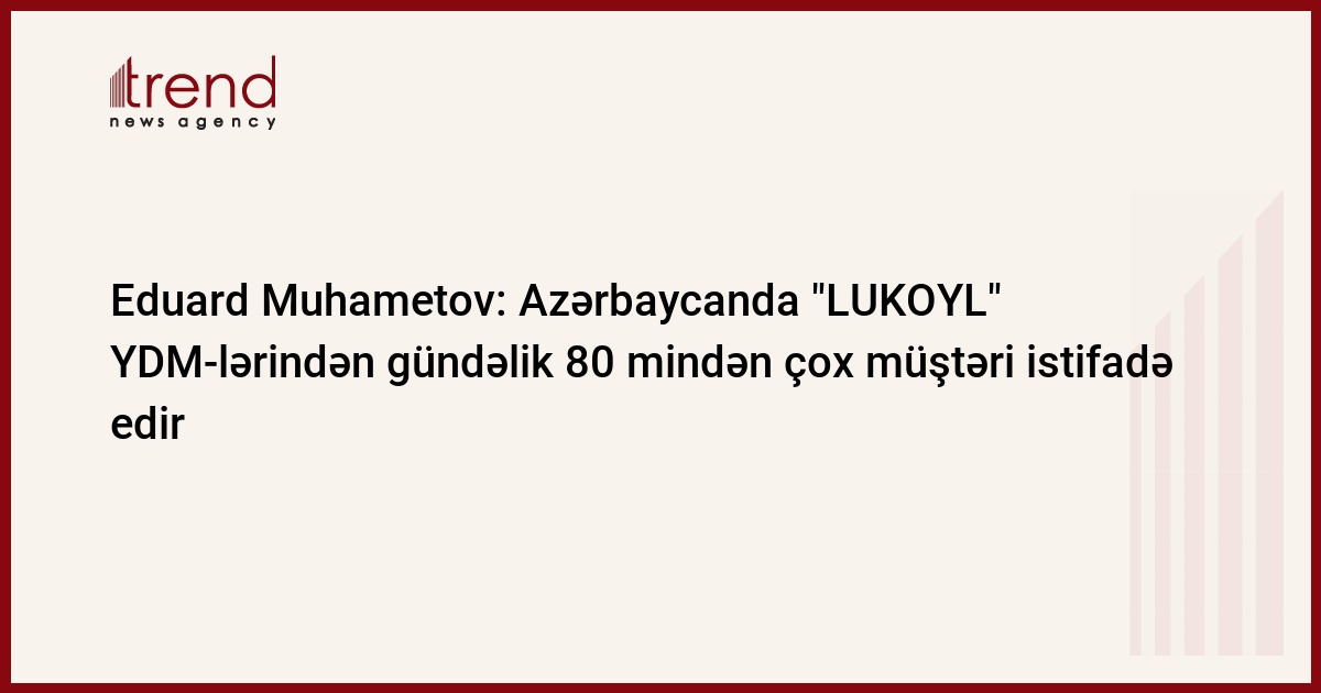 “LUKOYL-Azərbaycan” QSC-nin direktoru Eduard Muhametovun sözlərinə görə, “LUKOYL” məntəqələrindən hər gün 80 mindən çox azərbaycanlı sürücü istifadə edir: