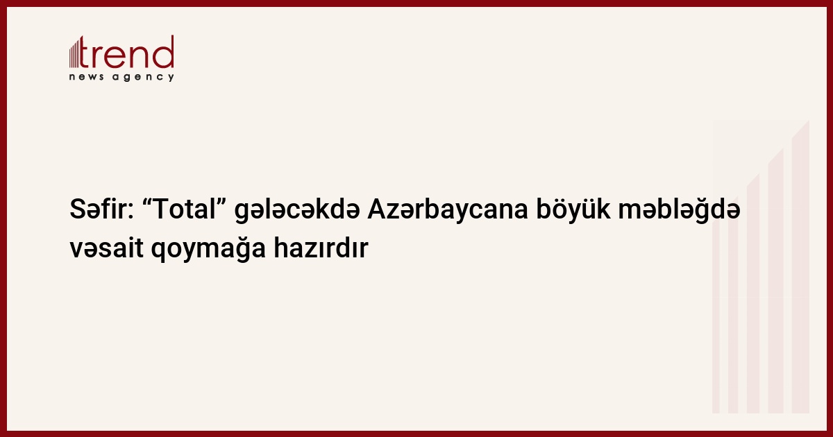 Fransanın “Total” şirkəti gələcəkdə Azərbaycana böyük məbləğdə vəsait qoymağa hazırdır.