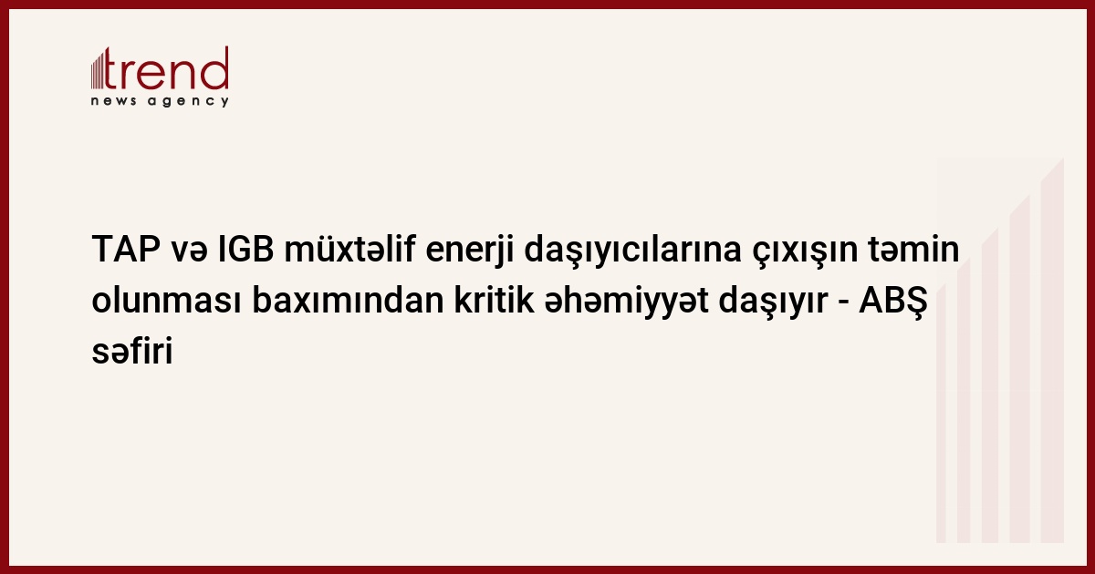 Səfir qeyd edib k, ABŞ təbii qazı daha ekoloji gələcəyə aparan, tullantıları azaldan və kömürdən imtinanı sürətləndirən yanacaq kimi nəzərdən keçirir.