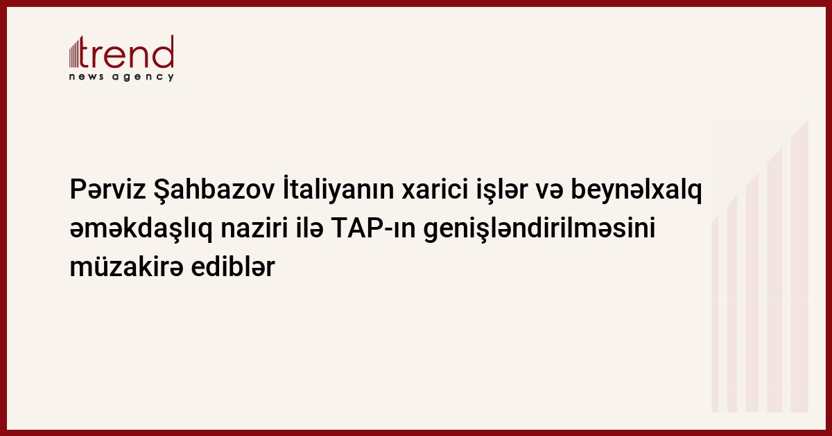 Nazirlikdən Trend-ə verilən məlumata görə, İtaliyanın xarici işlər və beynəlxalq əməkdaşlıq naziri Luici Di Maio ikitərəfli enerji əməkdaşlığının, ölkəsinin enerji təminatının və Avropa qaz bazarında mövqeyinin möhkəmləndirilməsində Trans-Adriatik Boru Kəmərinin (TAP) rolunu yüksək qiymətlləndirib. TAP-ın genişləndirilməsi üzrə fəaliyyətə başlamağın vacibliyini qeyd edib.