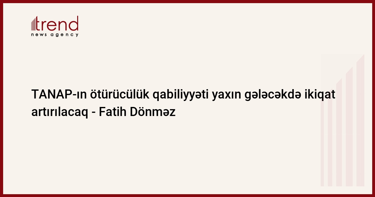 Trans-Adriatik qaz kəmərinin (TANAP) ötürücülük qabiliyyəti yaxın gələcəkdə ikiqat artırılacaq.