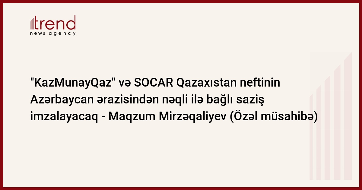 Maqzum Mirzəqaliyev qeyd edib ki, “KazMunayQaz” SOCAR-la münasibətlərin yalnız nəqliyyat məsələləri ilə məhdudlaşmamasını və mümkün qədər bütün əməkdaşlıq spektrini və ya palitrasını əhatə etməsini istəyir: