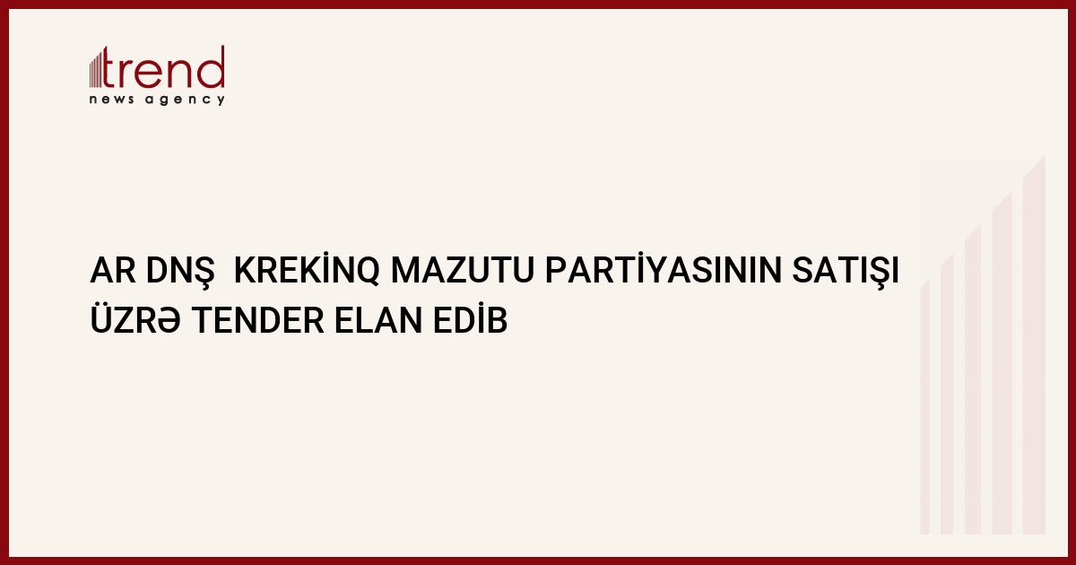AR DNŞ-in nümayəndəsinin sözlərinə görə, tenderin cümə günü bağlanacağı gözlənilir. 30 min ton krekinq mazutu satışa AzerenerjiSC-nin elektrik enerjisinin hazırlanmasında yanacaq kimi istifadəetdiyi mazutun saxlanması üçün nəzərdə tutulmuş anbarların tam yüklənməsmini bəyan etməsindən sonra çıxarılıb.
