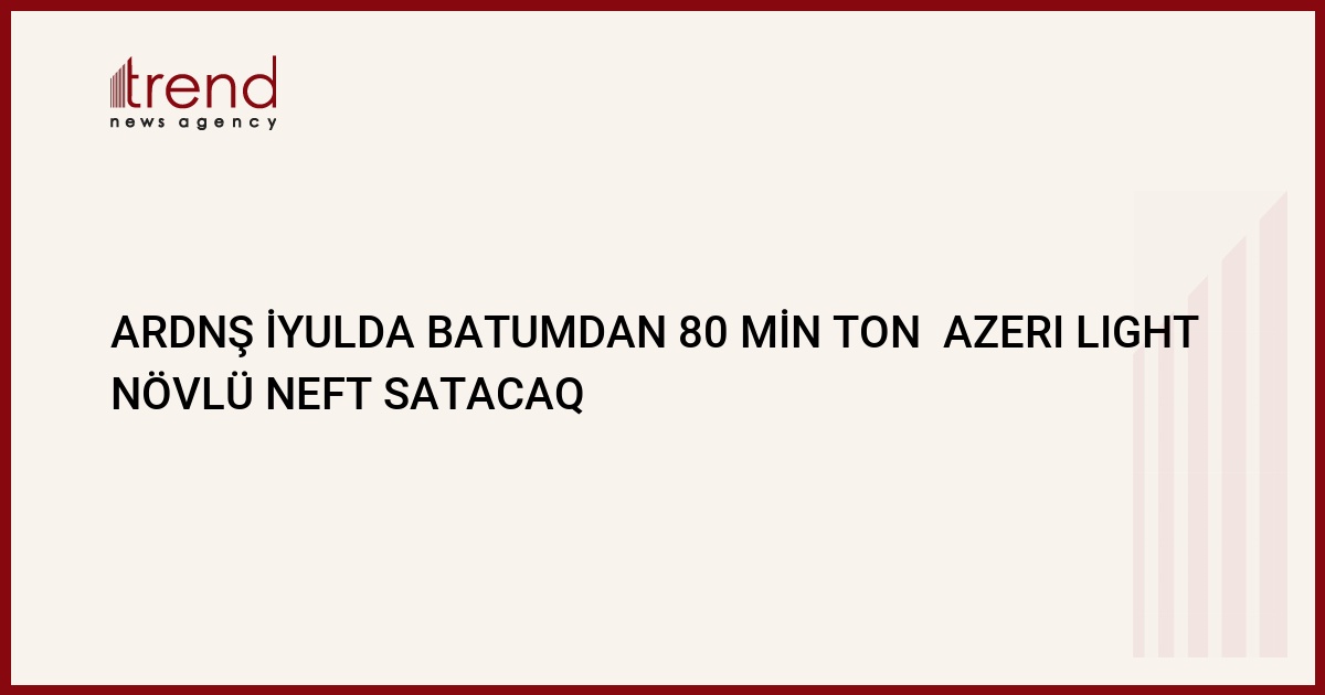 AR DNŞ-dən Trend ə verilən məlumata görə, FOBsatış bazasında iyulun-21-25-də Batumidə neftin bir tanker patiyasının yüklənməsi üçün şirkət 80 min ton AzeriLightneftinin satışı üzrə tender elan edəcək.