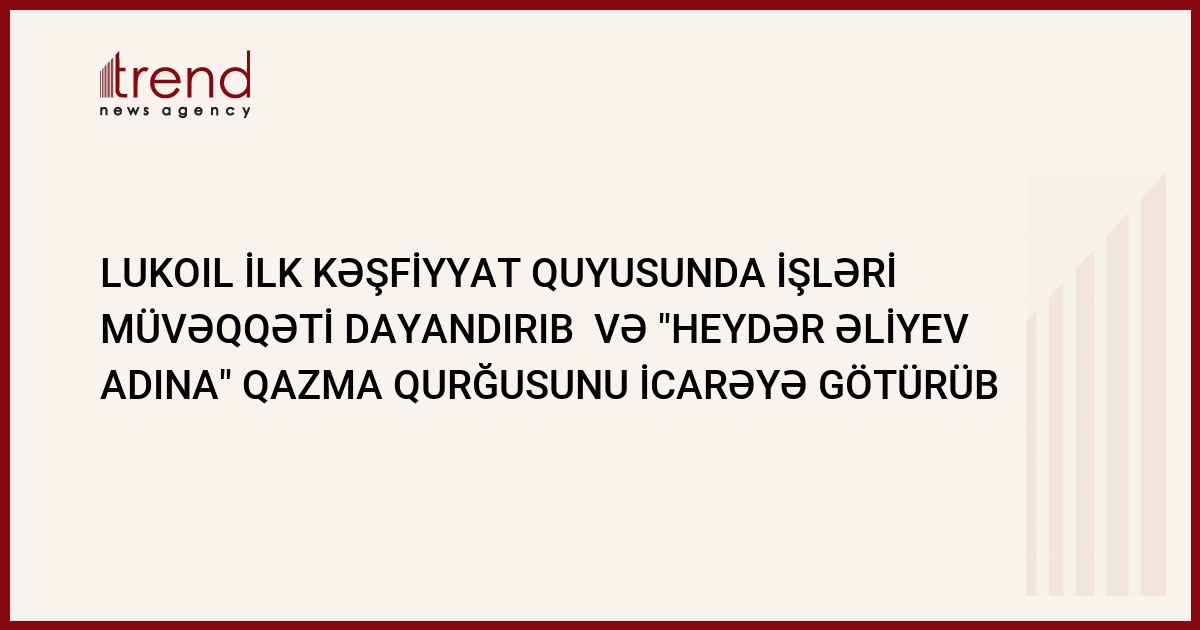 AR DNŞ qeyd edib ki, quyularda qazma işlərini həyata keçirən "Heydər Əliyev adına" qurğu(keçmiş LIDER) artıq LUKOILtərəfindən icarəyə götürülüb. Gələn ay qurğunun Xəzərin Türkmənistan sektorunda Maersk Oil-un sifarişi ilə "Qaradaşlıq" sahəsindəkəşfiyyat quyusu qazacağı ehtimal edilir.