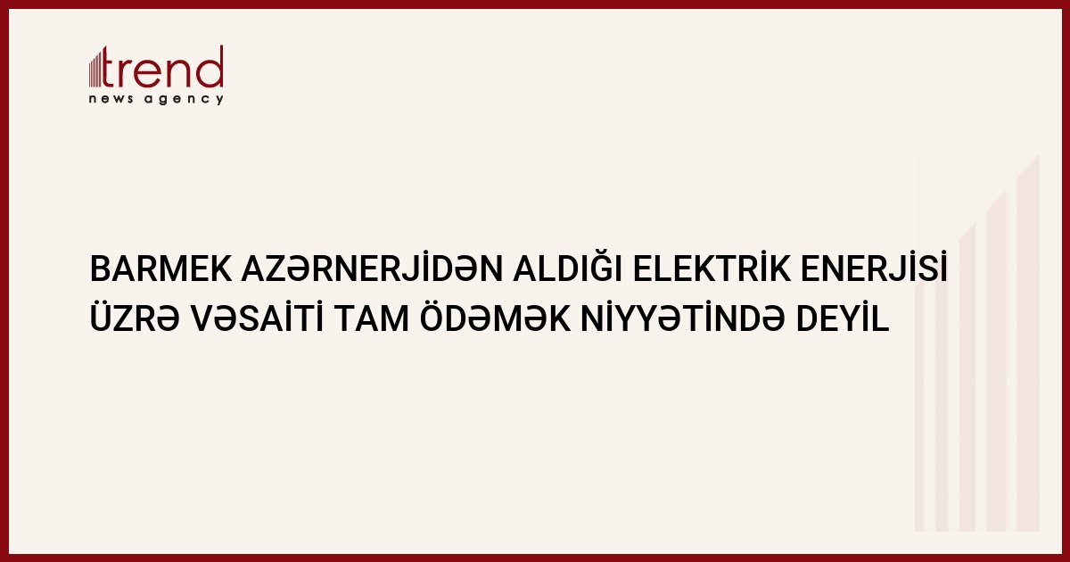 Barmek Azerbaycan (Bakı və Sumqayıt enerjipaylaşdırma şəbəkəsinin operatoru) Azərenerji SC-dən aldığı enerji üzrə vəsaiti tam ödəmək niyyətində deyil. Bunu Barmek Azerbaycan-nın prezidenti Hüseyn Arabul iyunun 29-da bildirib.