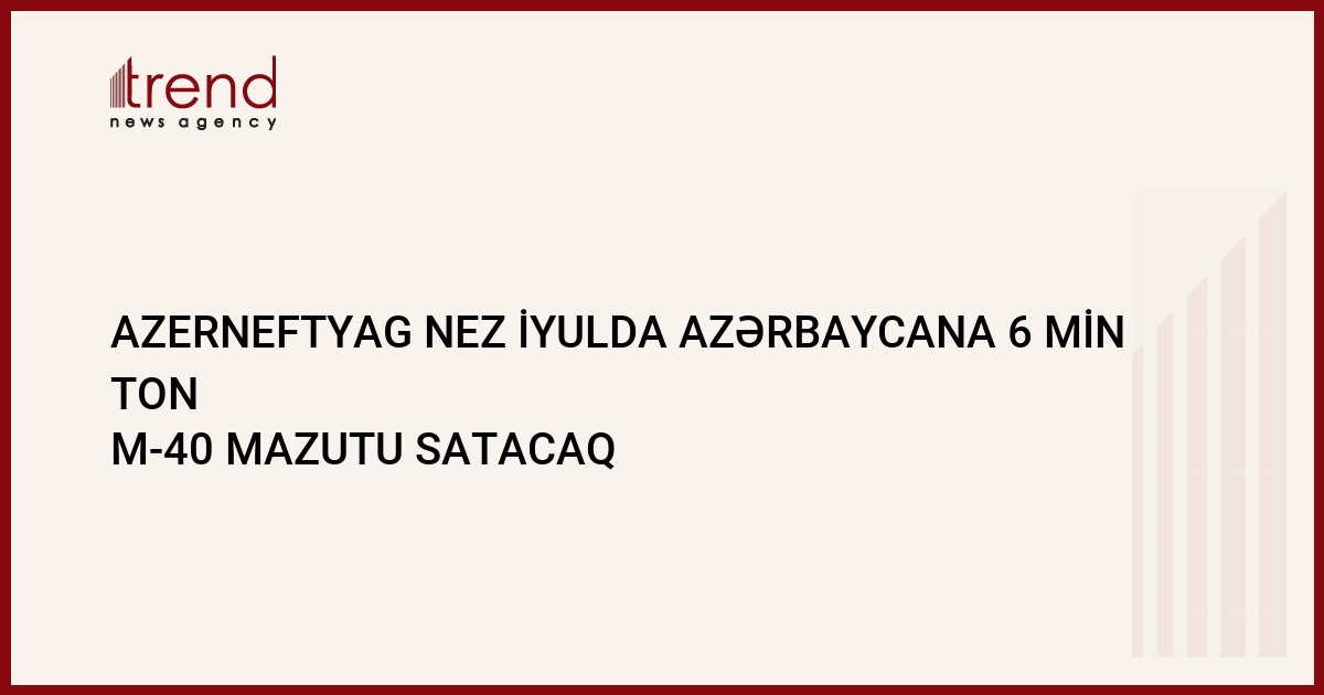 İyul ayında Dövlət Neft Şirkətinin tərkibinə daxil olan (ARDNŞ) Azerneftyag neft emalı zavodu (NEZ)Azərobaycanın daxili bazarında 6 min ton M-40 mazutunu reallaşdırmaq niyyətindədir. Bu barədə Trend ə NEZ-dən məlumat veriblər.