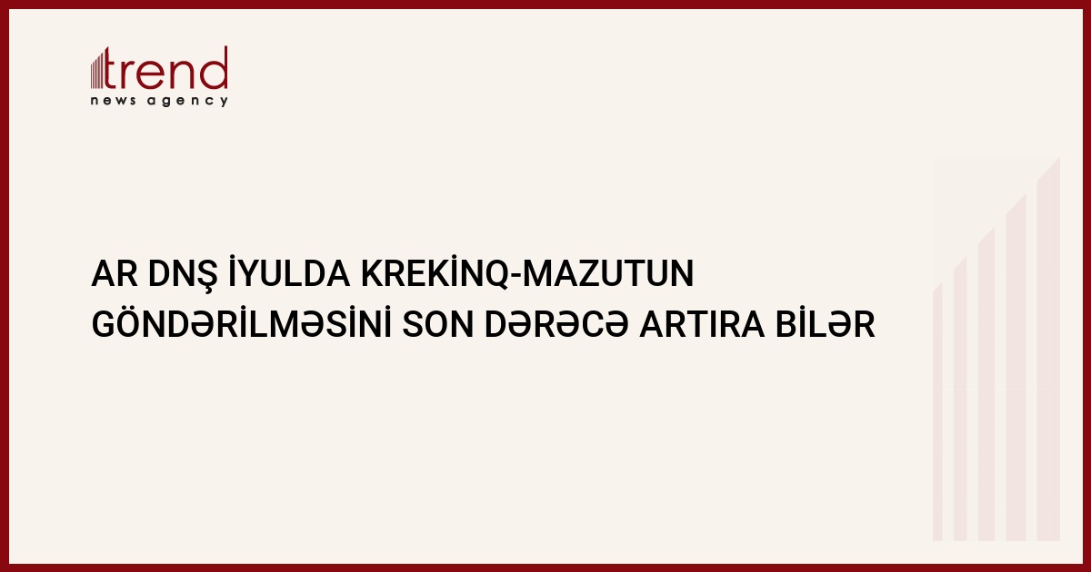AR DNŞ-ın nümayəndəsinin sözlərinə görə iyul ayında Gürcüstan bazarının tələbatını ödəmək üçün Fransanın Total şikətinə 5 min ton krekinq-mazut, daha 30 min ton isə Gürcüstanın Poti və Batumi limanlarına nəql etmək üçün Petrofarma göndəriləcək. "İyul ayında mazutun ixracını planlaşdırılmış 35 mindən 100 min tona qədər artırmaq imkanı istisna edilmir", - deyə AR DNŞ-da bildiriblər.