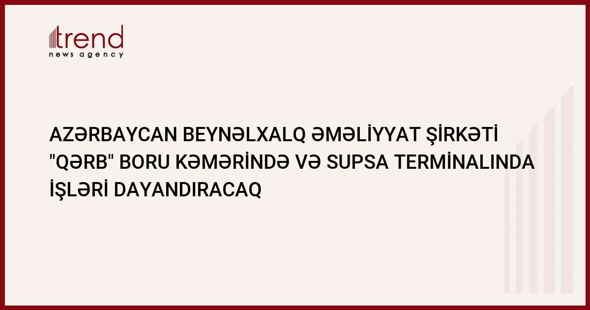 İyulun sonlarından Azərbaycan Beynəlxalq Əməliyyat Şirkəti (ABƏŞ) Gürcüstanın Supsa terminalında, daha sonra isə "Bakı-Supsa" terminalında işləri planlı qaydada dayandırmaq niyyətindədir. Bu barədə Trend ə ABƏŞ-dən məlumat verilib.