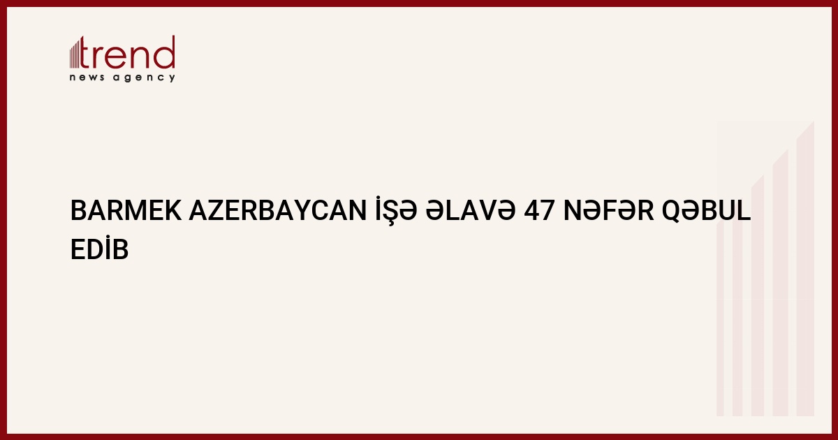 Barmek Azerbaycan (Bakı və Sumqayıtın enerjipaylayıcı şəbəkəsinin operatoru) işə - elektrik mühəndisi vəzifəsinə 47 nəfər qəbul edib.Şirkətdə Trend agentliyinə bildirilib ki, bu məqsədlə iyulun 30-da şirkətdə yeni energetiklərin işə qəbulu üçün müsabiqə keçirilib.