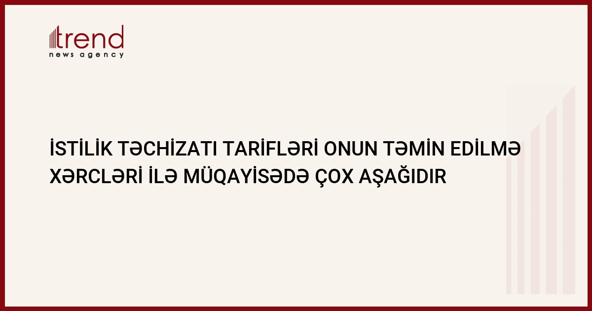 İstiliklə təchizat tarifləri onun təmin olunması xərcləri ilə müqayisədə son dərəcə aşağıdır. Bu barədə Trend ə PA Consulting Group layihə işçi qrupunun rəhbəri Maknill Uotkins (McNeill Watkins) Trend ə bildirib.