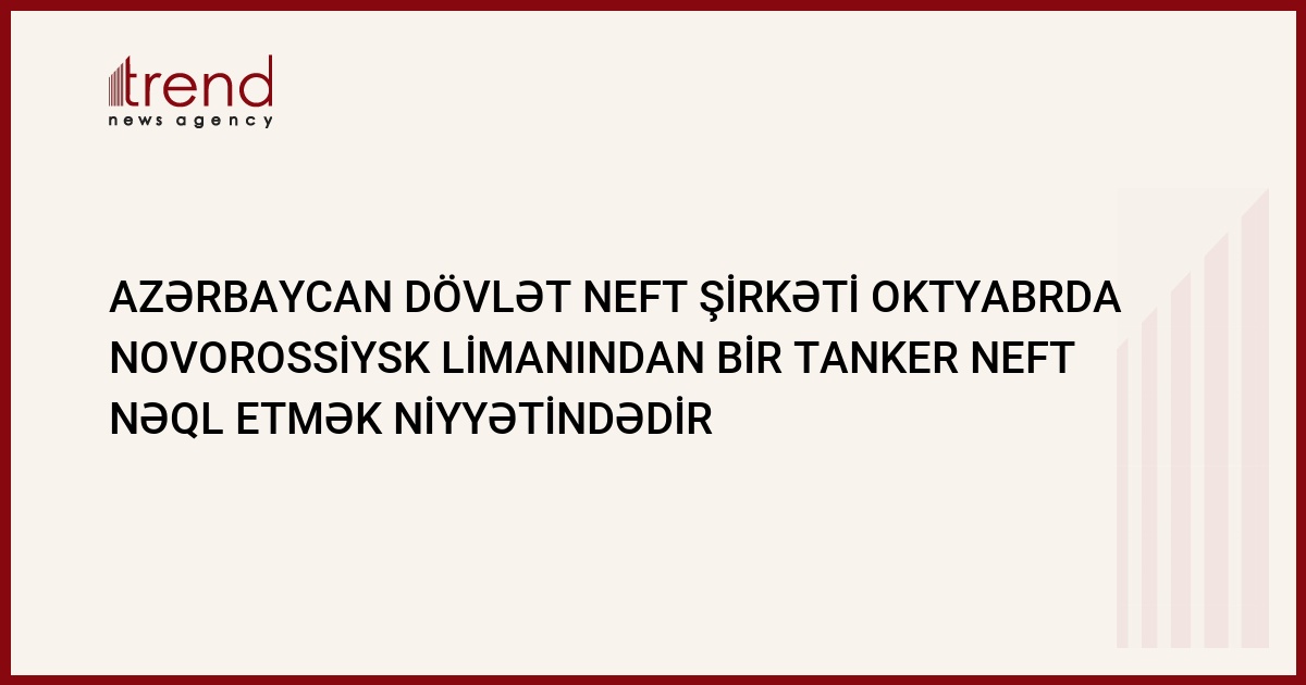 Azərbaycan Dövlət Neft Şirkəti ((AR DNŞ) oktyabrda Novorossiysk limanının N2 körpüsündən 80 min ton neft yükləməyi nəzərdə tutur. Sentyabrda isə Rusiya limanından 79 min ton neftin nəqli gözlənilir.