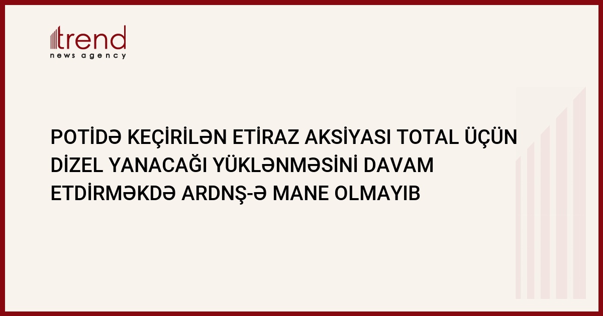 ARDNŞ Gürcüstanın Poti limanının keçmiş əməkdaşlarının keçirdiyi etiraz aksiyası nəticəsində limanın işində yaranmış qeyri-sabitliyin neft məhsullarının yüklənməsinə heç bir təsiri olmadığını bəyan edir.