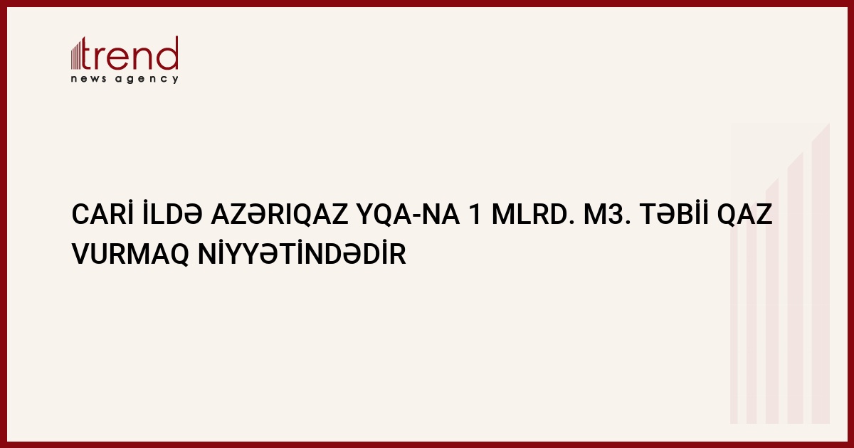 Cari ildə Azəriqaz QSC "Qaradağ" və "Kalmaz" yeraltı qaz ambarlarına (YQA) 1 mlrd.m3. təbii qaz vurmaq niyyətindədir. Trend in məlumatına əsasən, sentyabrın 6-da keçirilmiş mətbuat konfransında Azəriqaz QSC-nin sədr müavini Nazim Səmədzadə bu barədə bildirib.