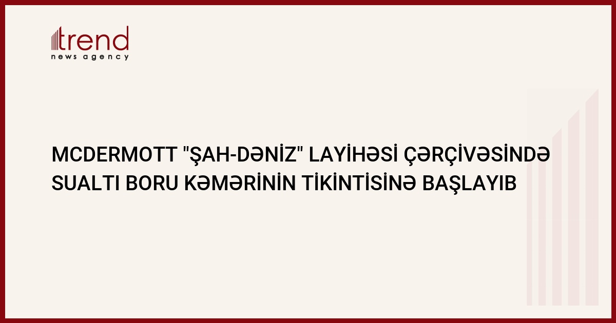 Amerikanın McDermott şirkəti bu həftə Xəzərin Azərbaycan sektorunda "Şah-Dəniz" qaz-kondensat yatağının işlənməsi üzrə layihənin "Mərhələ-1" çərçivəsində sualtı boru kəmərinin tikintisinə başlayıb.