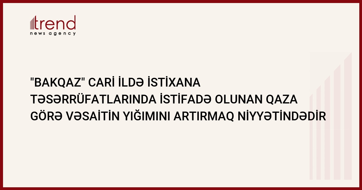 "Bakqaz" İstehsalat Birliyi (Azəriqaz QSC-in strukturu) cari ildə istixana təsərrüfatlarına verilən qaza görə vəsaitin yığımın artırmaq niyyətindədir. Bu barədə İstehsalat Birliiyndən (İB) Trend ə məlumat verilib.