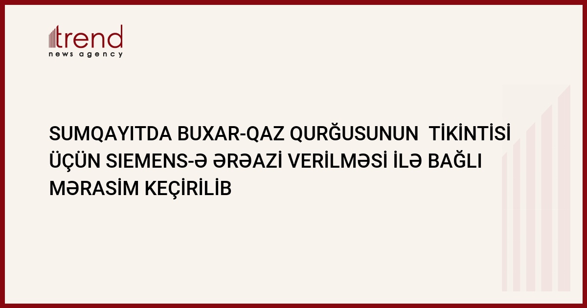 Sentyabrın 21-də Sumqayıtda gücü 506 MVt olan buxar-qaz qurğusunun tikilməsi üçün Almaniyanın Siemens şirkətinə ərazi verilməsi mərasimi keçirilib. Azerenerji Səhmdar Cəmiyyətinin mətbuat xidmətindən Trend ə verilən məlumata görə, bu proseduranın həyata keçirilməsi üçün Siemens PG-nin Avropa MDB və Avstraliya üzrə layihələrinin rəhbəri Perer Şvaqmanın rəhbərlik etdiyi nümayəndə heyəti Azərbaycana gəlib. Nümayəndə heyətinin tərkibinə elektrik stansiyalarının tikintisi şöbəsinin rəhbəri German Han (Hermann Hahn), Sumqayıt BQQ üzrə menecer Georq Vin (Georg Wiehn) və digər şəxslər daxil olublar. Siemens-in missiyası Sumqayıt elektrik stansiyasında olublar. Burada Azerenerji SC-nin rəhbəri Etibar Pirverdiyev onları tikinti meydanındakı vəziyyətlə tanış edib və görülən işlər barədə danışıb.