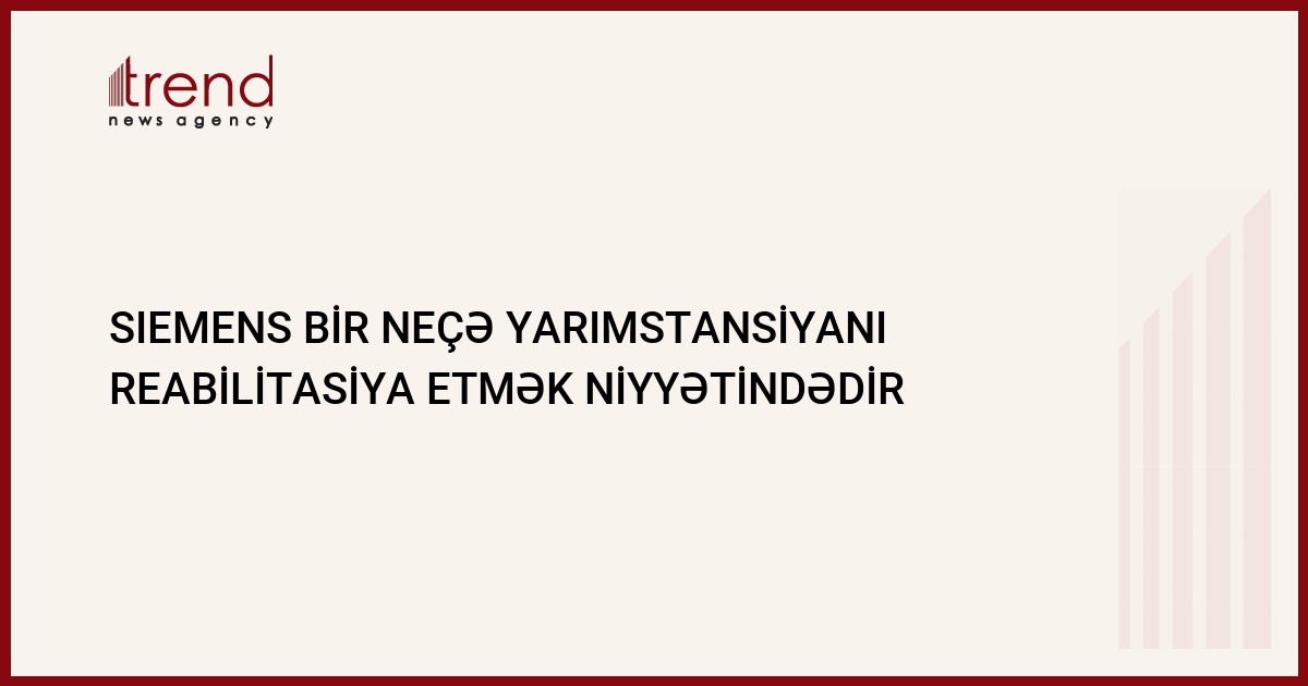 Almaniyanın Siemens şirkəti bu ölkənin KfW bankının krediti ilə həyata keçirilən "Ötürücü sistemlərin reabilitasiyası proqramı" layihəsi çərçivəsində işləri ilin sonuna kimi başa çatdırmaq niyyətindədir. Bu barədə şirkətin Azərbaycandakı nümayəndəliyinin baş direktoru və rəhbəri Samir Axundov Trend ə ekzkluziv məlumat verib.