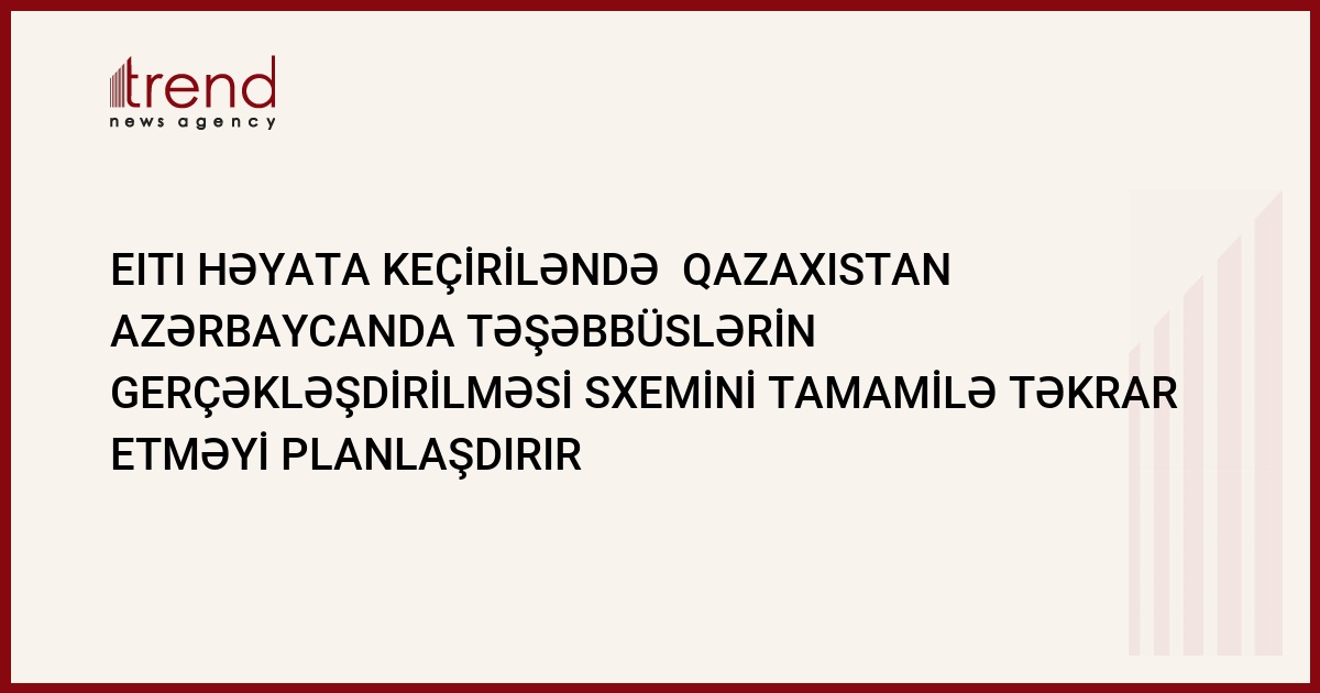 Hasilat sənayesində şəffaflıq Təşəbbüsləri (EITI) həyata keçirilərkən Qazaxıstan EITI-nin gerçəkləşdirilməsi modelindən istifadə etməyi planlaşdırır. İnformasiya mənbələri Trend ə bildirib ki, cari ilin oktyabrın 5-də Qazaxıstanda müvafiq memorandumun imzalanacağı nəzərdə tutulur.