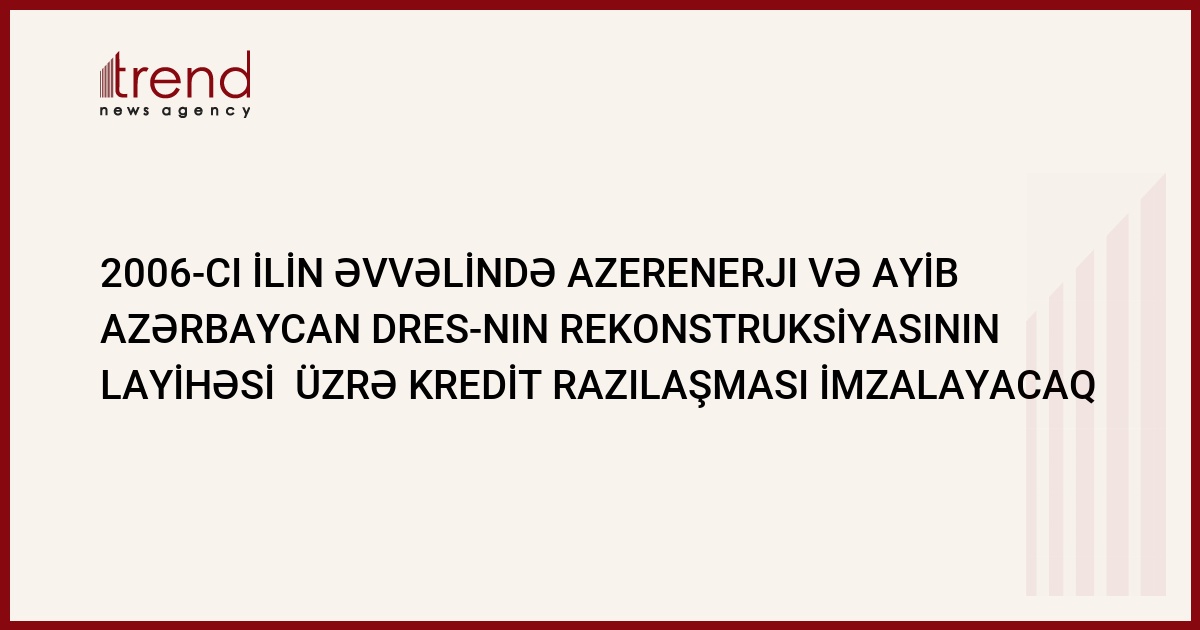 2006-cı ilin əvvəlində Azerenerji Açıq Səhmdar Cəmiyyəti və Avropa Yenidənqurma və İnkişaf Bankı (AYİB) Mingəçevir şəhərində Azərbaycan Dövlət Regional Elektrik Stansiyasının (DRES) yenidənqurulması üçün kredit ayrılması barədə razılıq imzalayacaq. Trend ə Azerenerji SC-nin mətbuat xidmətindən verilən məlumata görə bu barədə Azerenerji ASC-nin prezidenti Etibar Pirverdiyev bəyan edib.