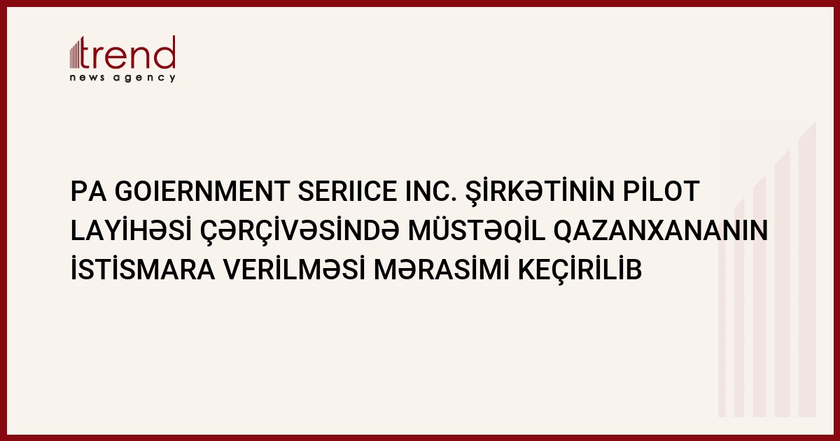 Noyabrın 15-də Azərbaycan istilik təsərrüfatında problemlərin həll edilməsi strategiyasında nəzərdə tutulmuş PA Government Service Inc. (PA Consulting Group-a daxildir) pilot layihəsi çərçivəsində müstəqil qazanxananın istismara verilməsi mərasimi keçiriləcək. Trend bildirir ki, oktyabrın 13-də bu barədə layihənin işçi qrupunun üzvü İlham Mirzəliyev bəyan edib.