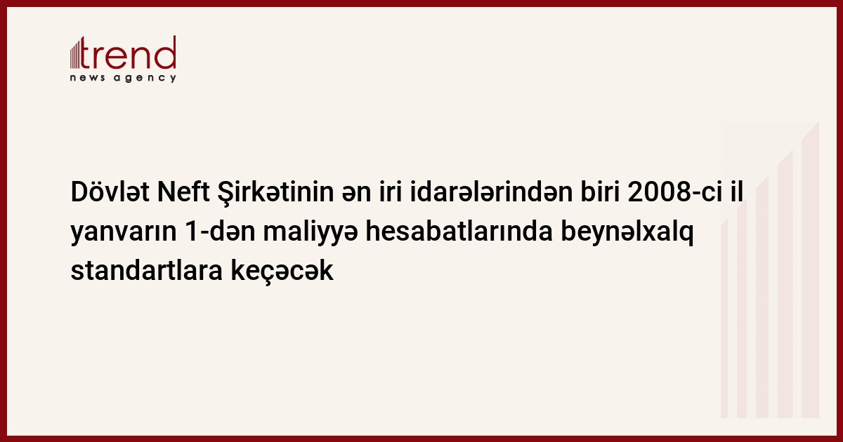 Nazirlər Kabineti Azərbaycan Dövlət Neft Şirkətinin Marketinq və İqtisadi Əməliyyatlar İdarəsinin 2008-ci l yanvarın 1-dən maliyyə hesabatları beynəlxalq standartlarına keçməli olan şirkətlərin siyahısına daxil olması barədə qərar dərc edib.