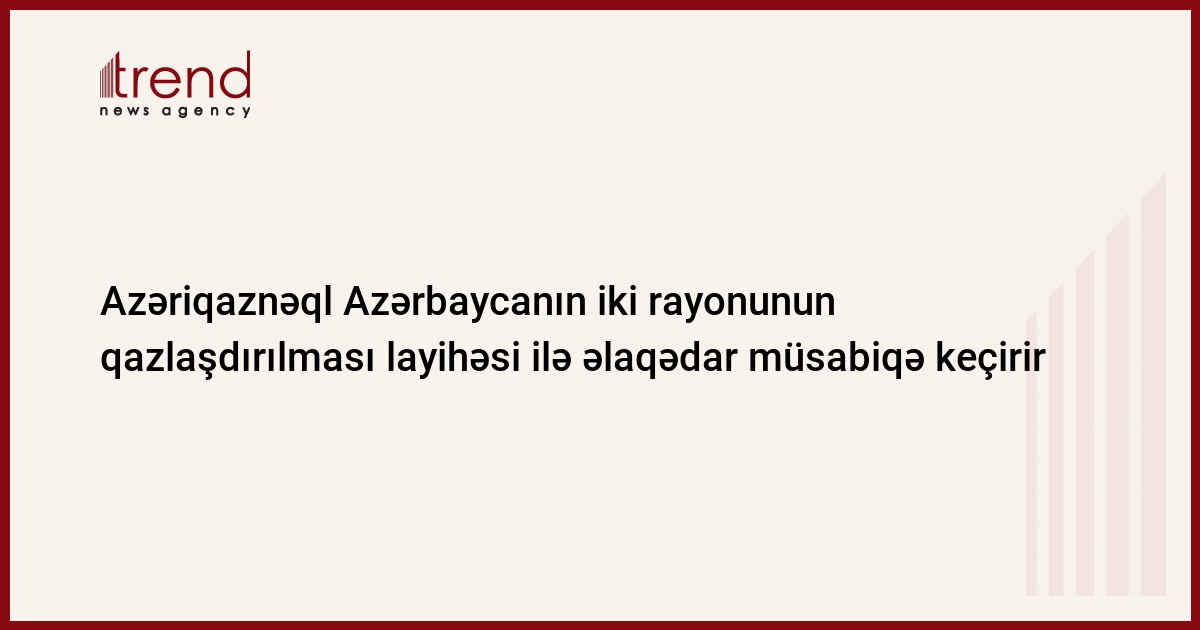 Azəriqaznəql ( "Aztransqaz" İB - Azəriqaz QSC-nin strukturu) İstehsalat Birliyi Azərbaycanın Lerik və Yardımlı rayonlarının qazlaşdırılıması layihəsi ilə əlaqədar müsabiqə keçirir. Bu barədə Trend ə İstehsalat Birliyindən (İB) məlumat verilib. Müsabiqə qaz xəttlərinin, qaznizamlayıcı məntəqələrin, inzibati binaların tikintisini, radioəlaqə sisteminin quraşdırılmasını nəzərdə tutur. Qaz xəttlərinin, qaznizamlayıcı məntəqələrin, inzibati binaların tikintisi üzrə müsabiqə dekabrın 24-də, radioəlaqə sisteminin quraşdırılması üzrə müsabiqə isə dekabrın 30-da keçiriləcək. Maraqlı şirkətlər İB-nə bu müddətlər başa çatana kimi müraciət edə bilərlər.